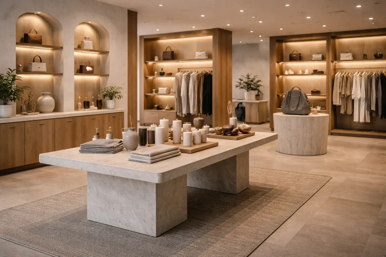 Layered lighting highlights merchandise without glare or harsh contrast. Ambient light keeps the space comfortable, while accent lighting draws attention where needed.